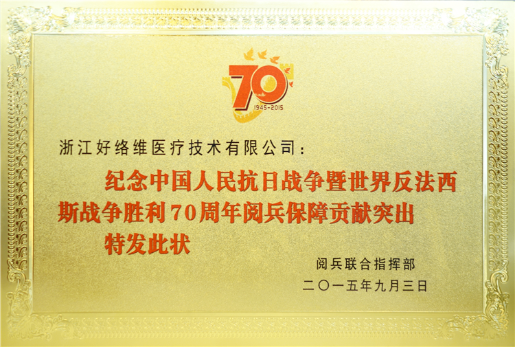 70周年閱兵保障突出貢獻(xiàn)獎(jiǎng)狀